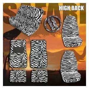 11 pc YupbizAuto Brand Safari Zebra High Back Car Mats Seat Covers Steering Wheel Cover Set