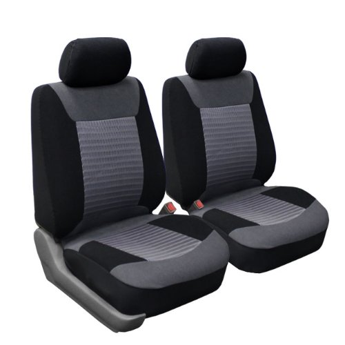 FH-FB062102 Classic Corduroy Bucket Seat Covers, Airbag compatible and Split Bench, Gray / Black