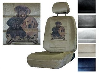 Seat Cover Connection labrador Retriever trio with Bone print 2 Low Back Bucket Car Truck SUV Seat Covers with 2 Head Rest Covers - Blue