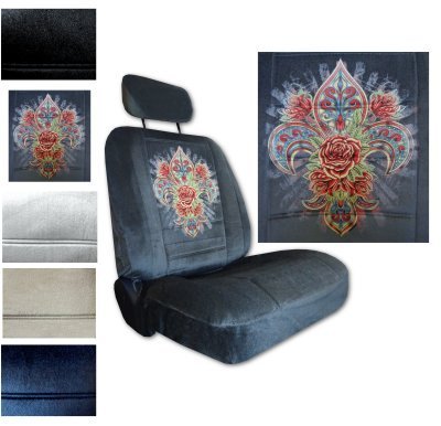 Seat Cover Connection Rose Fleur Delis print 2 Low Back Bucket Car Truck SUV Seat Covers with 2 Head Rest Covers - Charcoal Grey